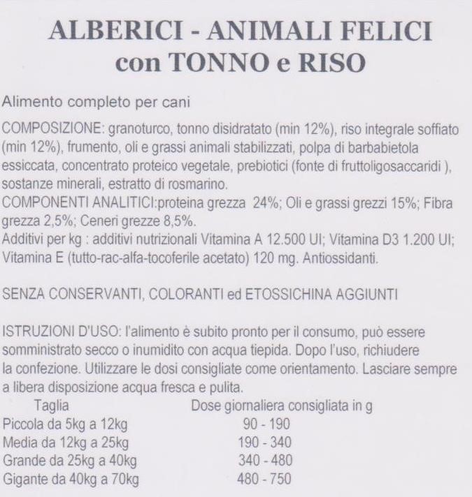 Recensisci Crocchette Alberici per cani - TONNO E RISO kg 10 del marchio vari.